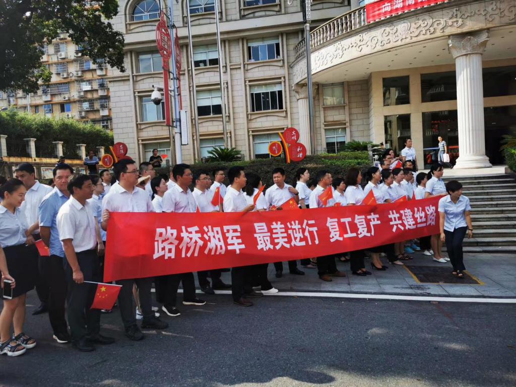 出征仪式上,湖南交水建集团向导向赴格团组领队授 " 赴格鲁吉亚复工复产先锋队 " 队旗,省国资委、湖南交水建集团和ag官方电子平台集团相关向导对团组成员举行慰问,赠予防疫爱心礼包,欢送这群为国际工程履约、奔赴外洋的 " 最美逆行者 "。